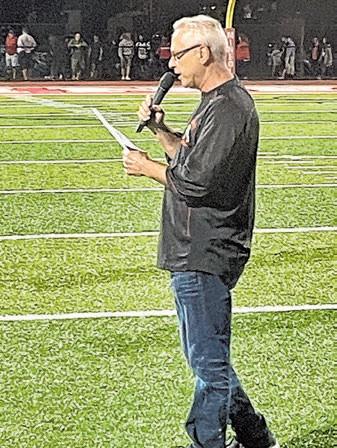 A banner honoring inductee Jim Brown, Class of ‘39. The induction ceremony took place during a Mineola vs. Island Trees home game halftime. Former Mineola wrestler Frank Massaro reads an acceptance speech. Inductee and former soccer star Manny Matos was on hand to accept his plaque. Inductee Katherine Hock Bennett, Class of ‘01. Inductee Jack Emmer, Class of ‘63. Inductee Bruce Webster’s daughters, Leigh and Lore, accepted the honor on his behalf. (Photos courtesy of Dan Guido and the Mineola High School Athletic Hall of Fame)