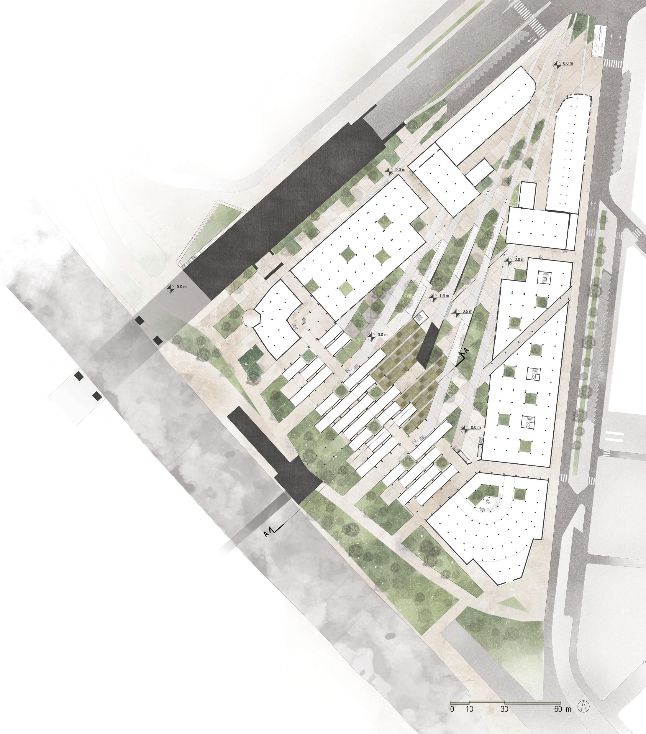 The project was developed within the context of my master’s degree thesis and it explores the topic of architectural redevelopment and its impact on a consolidated urban fabric. The subject of this study is the old market of Legazpi, in Madrid. The former wholesale market, built in the first half of the 20th Century, is a rare example of Madrilenian rationalist architecture and, albeit abandoned, it still maintains a strong relationship with the locals, even today. Most of the work behind the project is composed of an in-depth analysis of the context, the history and the architectural texture of the structure. The intervention provides for the restoration and refunctionalisation of the building with the introduction of new features such as a library, public offices, a kindergarten and an elementary school, spaces for the neighbourhood associations and shops, a big central public square, as well as new accesses and connections with the surrounding buildings so as to mend the weft that used to tie the market to the city’s urban processes.
