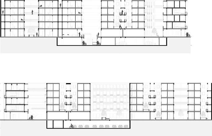 FIRST FLOOR Commerce socle, common shared spaces and housing units