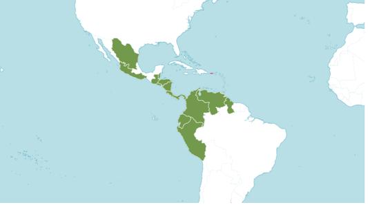 Belize,Colombia,CostaRica,Ecuador,El Salvador,Guatemala,Guyana,Honduras, MexicoNortheast,MexicoSouthwest, Nicaragua,Panamá,Peru,Trinidad-Tobago, Venezuela
