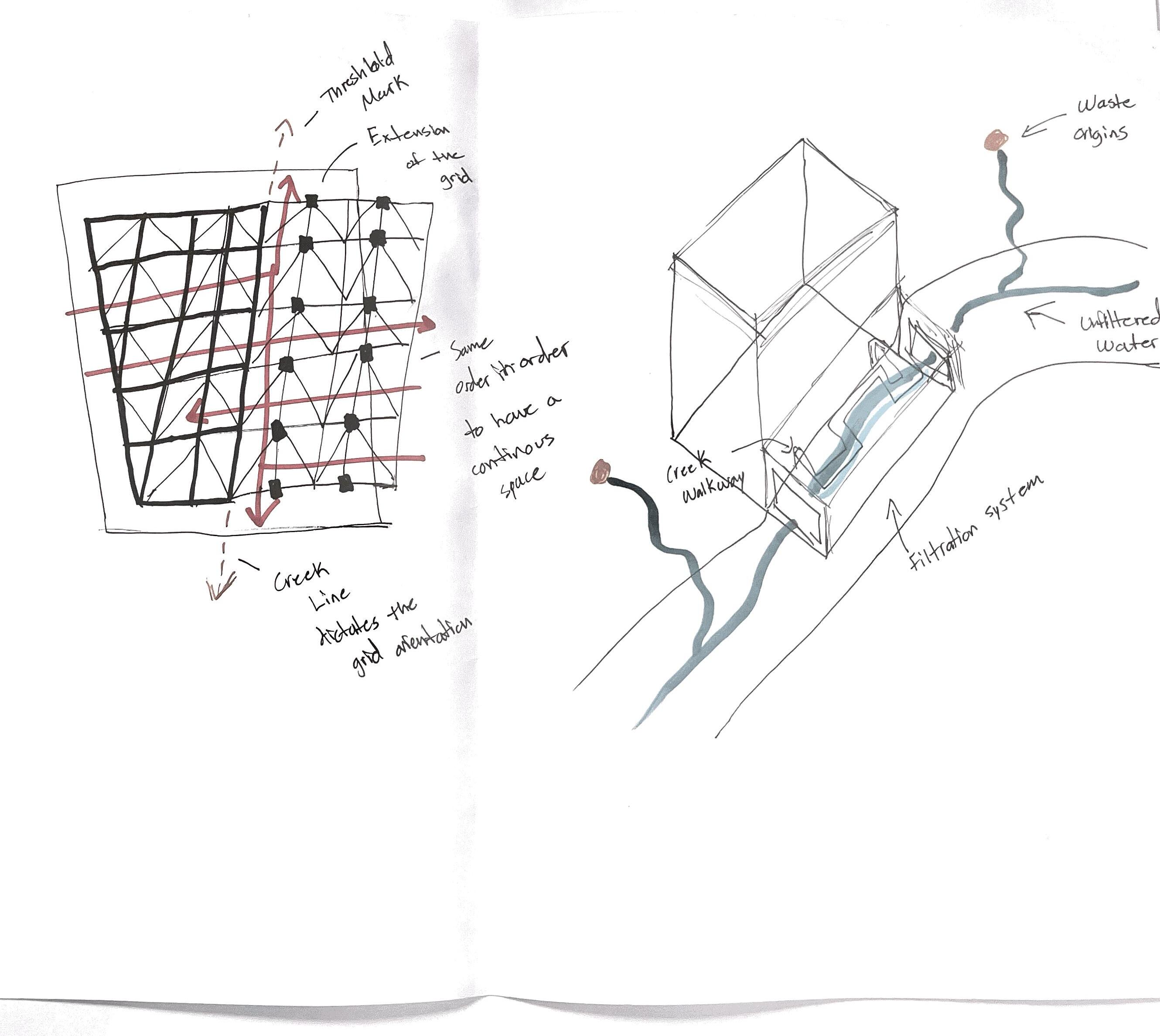 Set in downtown Austin Tx, this project aims to create a place for recreational settings with an emphasis on water transformations. These transformations include architectural forms and natural bodies of water including a creek running through and past the site. Design considerations were based on the study of the existing urban fabric at two scales, the context scale and the building scale.