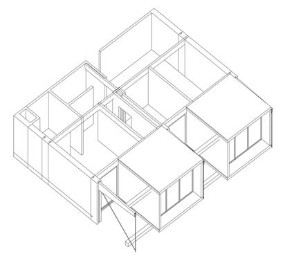 - The side of the hotel rooms has a double facade (A) with sliding glass doors on the interior and a bamboo lattice towards the exterior, with a broken border that gives shape to the terraces of each room