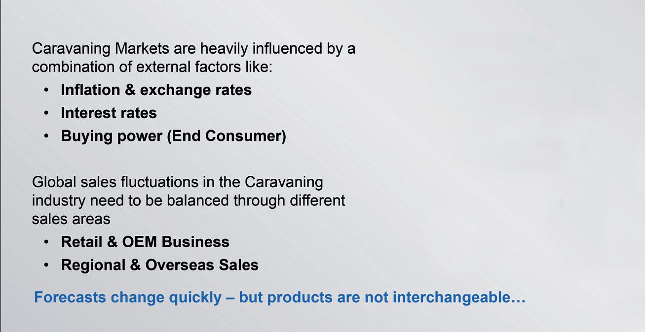 eries. But, for the speakers of both companies, the solution is to face the future together: the success in the RV industry relies on continuous innovation and adaptation to meet customer demands, and the collaboration of industry members with a customer-centric approach is seen as essential to create a sustainable and inspiring future for the caravan sector.