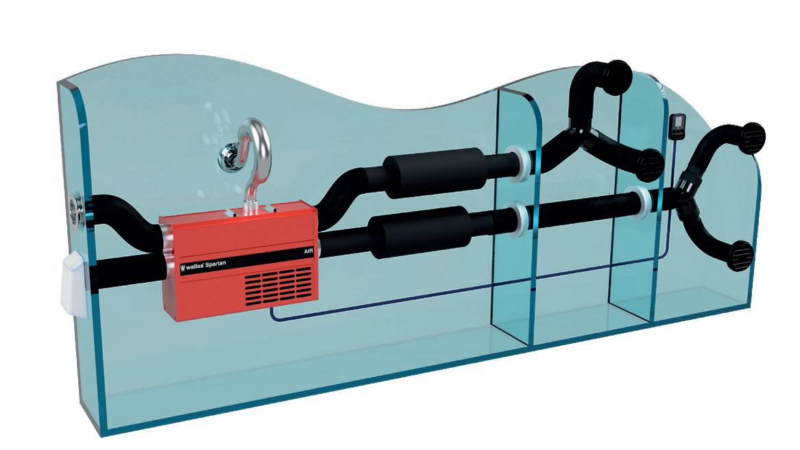 In addition, the laminar burning process used in these heaters ensures remarkably silent operation - like a candle. Extensive testing has been conducted to ensure their durability, with the burner surpassing 15,000 to 40,000 hours of usage. This durability rating is three to eight times higher than the average rating of other similar devices available on the market, demonstrating the reliability and longevity of Wallas’ heating systems. Typically, diesel heaters only have one shared fan motor, but Wallas heaters have two separate RPM controlled high quality fan motors; one accurately controls the combustion process to ensure a clean and stabilized burning process, the other ventilates the air through the heat exchanger to the interior. This gives the possibility of setting the heating to minimum and ventilation to maximum to dry the camper van very effi -
