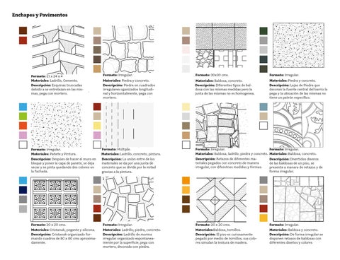 Formato: Irregular. Materiales: Baldosa y concreto. Descripción: De forma irregular se disponen retasos de baldosas con diferentes diseños y colores