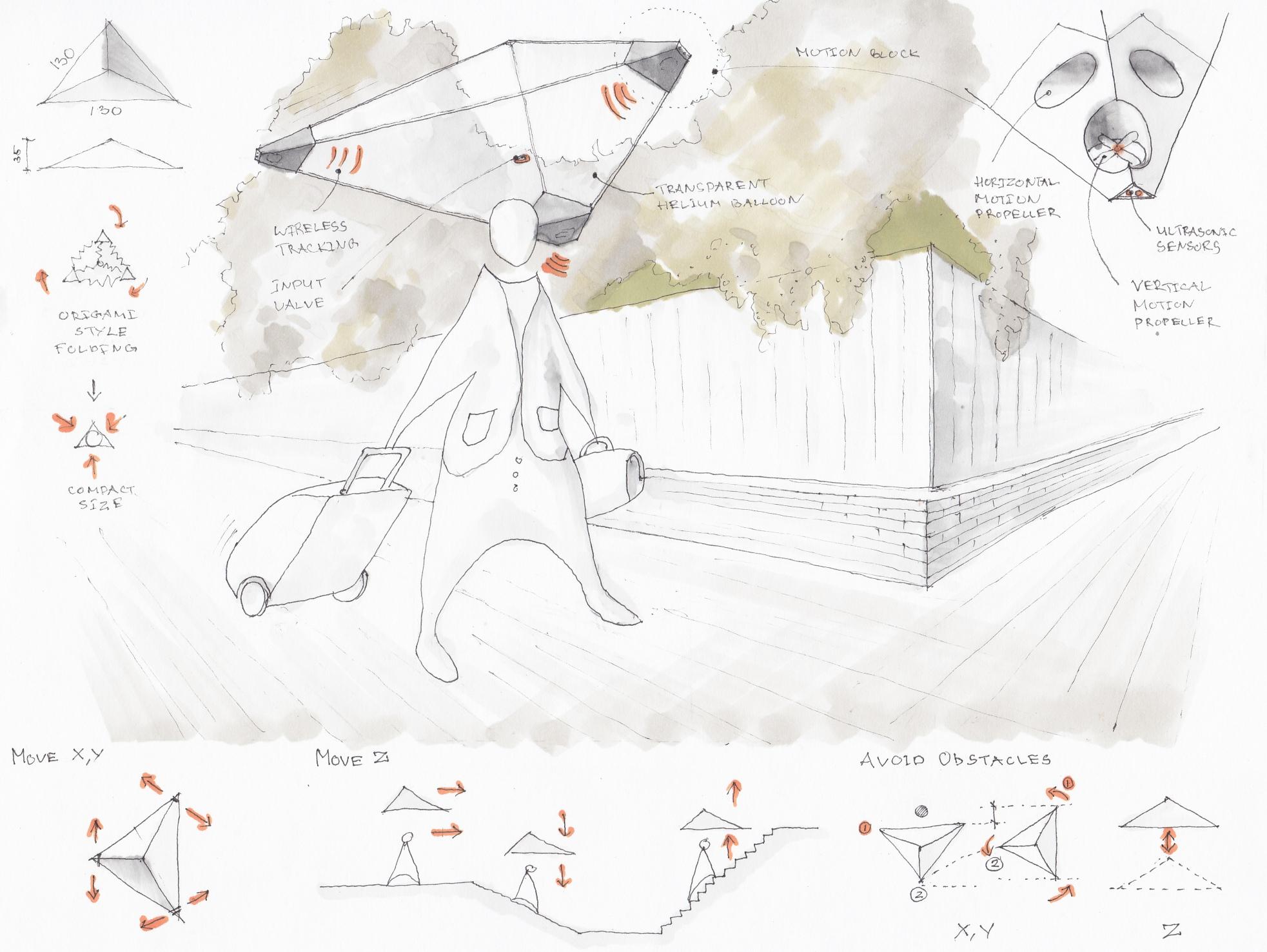 Are you tired of holding your umbrella during Autumn ’s cold and rainy days? Is it annoying to get wet when trying to avoid other people or obstacles? Magicasa is the solution for all your problems! Magicasa will be hovering over you and tracking all your moves while avoiding potential obstacles, so that you can do other things while walking in the rain. This is the world’s first smart flying umbrella project that I had the chance to lead, winning the Bill and Melinda Gates F oundation grant as well as first prize in product design competition a g a i n s t 1 0 + t e a m s . F o r m o r e i n f o r m a t i o n o n i t s components and function see . here