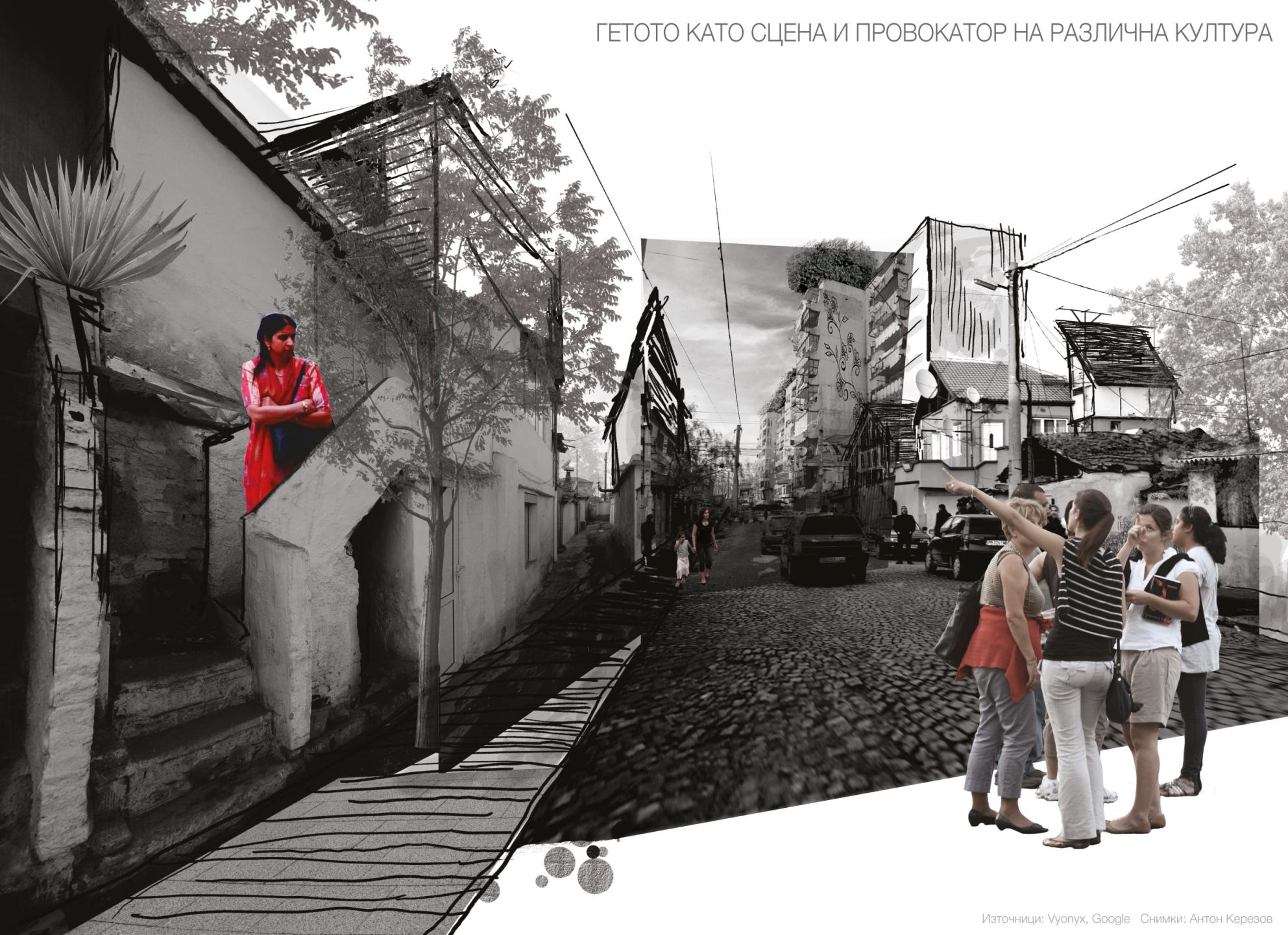 This is my part of a bigger project analyzing and propos‑ ing strategies for Plovdiv as a candidate for Cultural capital of Europe 2019. The ghetto of Stolipinovo, Plovdiv as cultural provocateur and activator is the aim of my concept. It tries to engage with the R oma people in unique new ways and their well know talent for singing and dancing. The best of their artist‑children