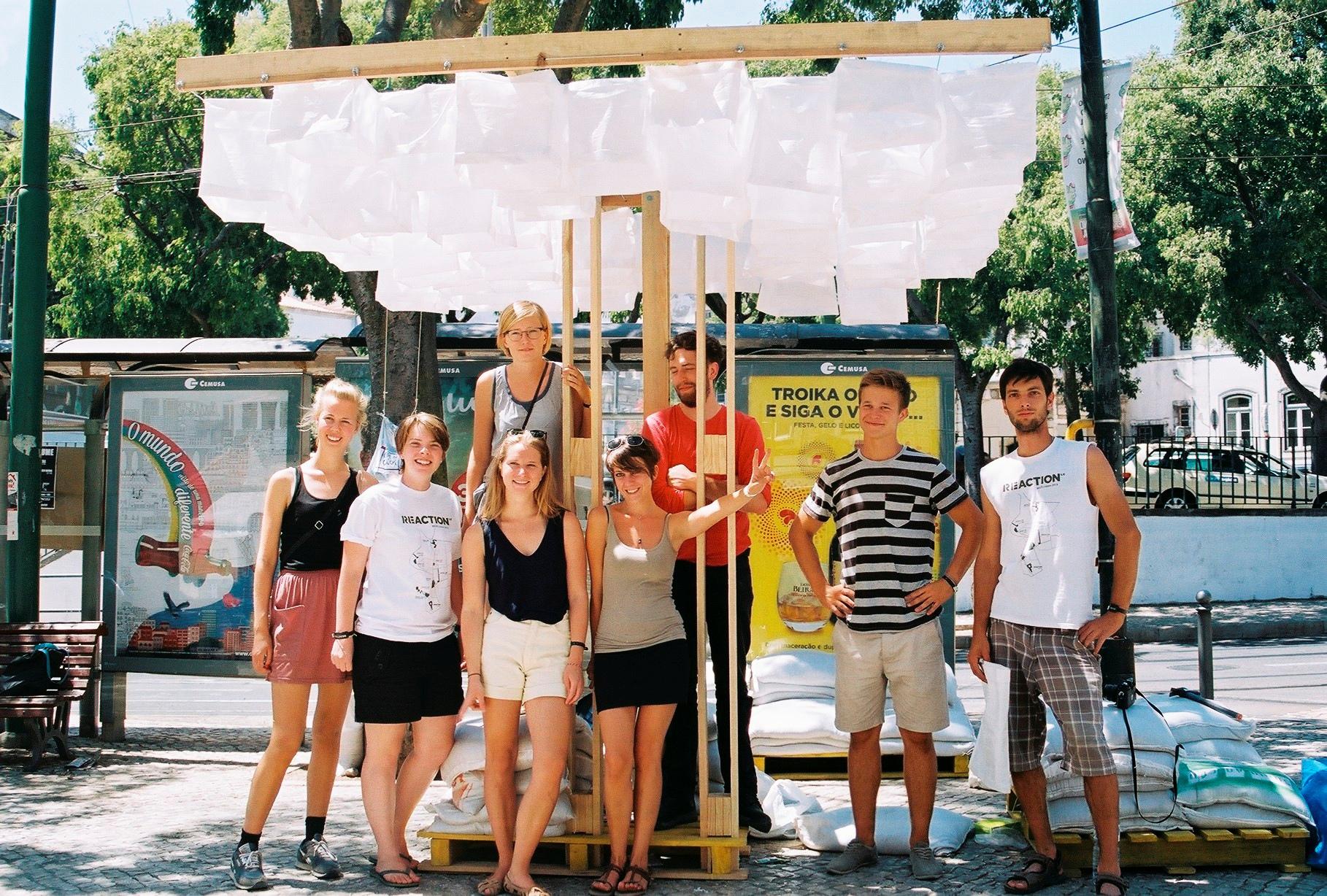 During the summer of 2013 I visited P ortugal for a two week workshop ‑ MEDS (Meeting of Design Students) in Lisbon. This is a new format that closely resemble EASA. I participated in the Seating seeds workshop. W e had to make seating with bags full of sand at the L argo da Graca square in the old town. W e made a research about this place with the help of a local translator and then we concluded that the people want more shade, working water fountain and a place to sit as we hoped.
