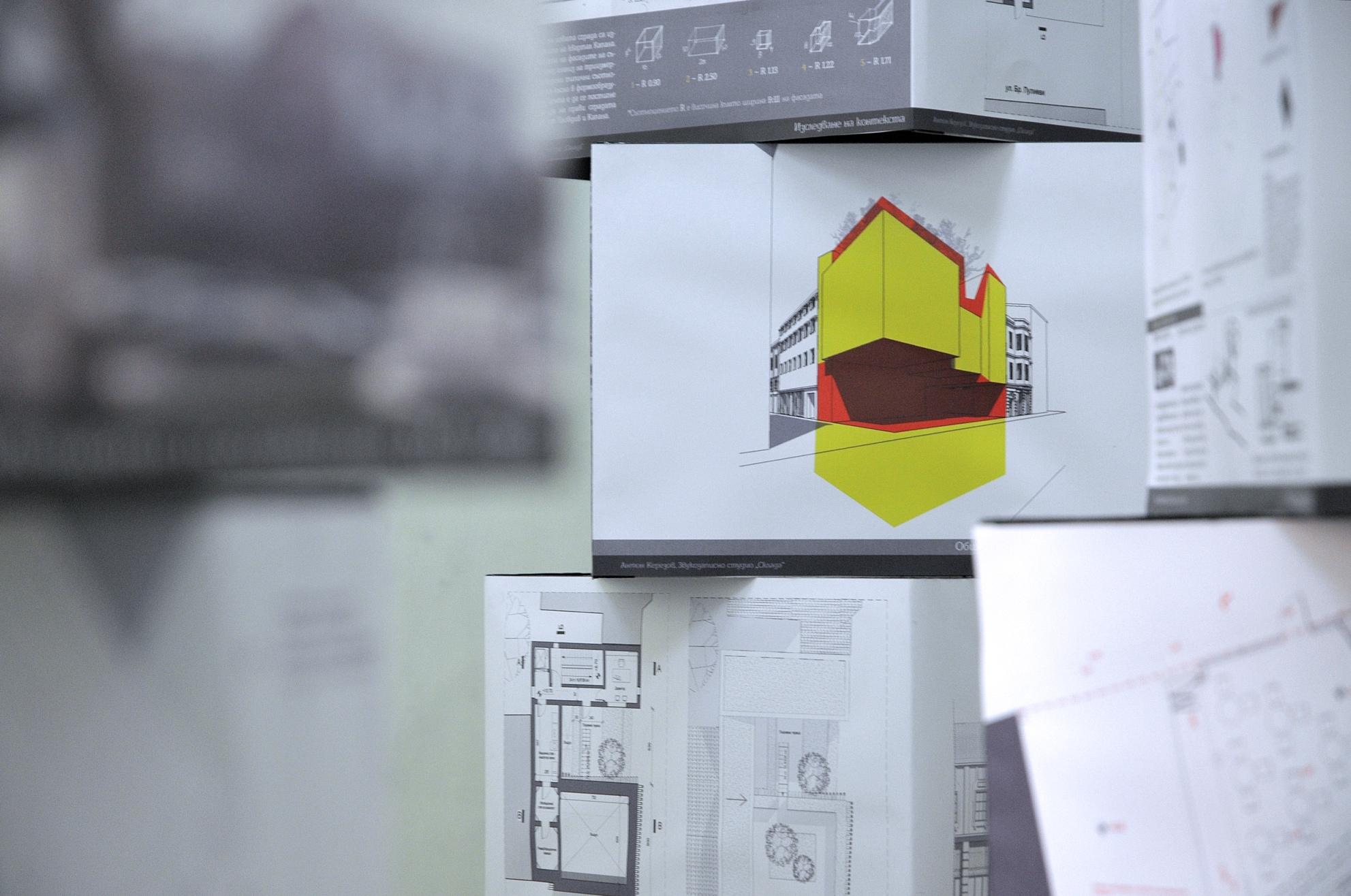 One of the exhibitions was the one in which I had a personal project ‑ R ecording studio “Sklada” reviewed earlier . Three other architectural projects along with two urban projects, urban researchers interviews and their “hanging” questions as well as an installation and