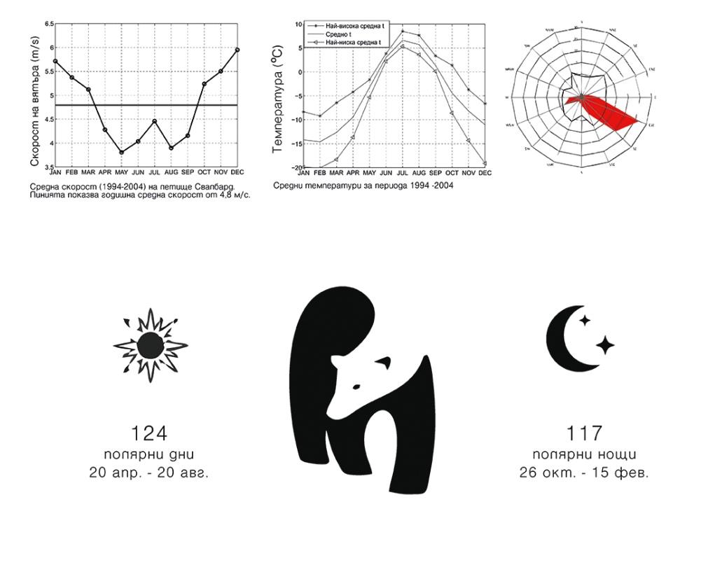 “past” and trough 419 steps (the years Svalbard is known to humans) you go to the top from where you see the future/present settlement. In it’s interior , semi translucent windows show graphics about the history of the place. The intention of the project was to convey the feeling that human exploration should know its limits and respect the nature by treating human activity and settlement remains responsibly