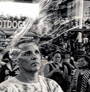 shift was quite a pivot from his National Park work. “When I’m taking pictures for a historical society or a park, the scene is already set up. Nothing moves. I usually am using a tripod to keep the cameras as steady as possible, and I use a wide lens. In street photography, you have to anticipate the movement around you, sense when something might happen, and have the quickness to translate that feeling into capturing the image.”