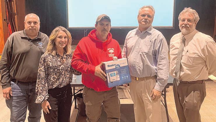 From the left: PWWD Superintendent Paul Prigano, PWWD Commissioner Mindy Germain, Jack Raia of Jack & Son Landscaping and Irrigation, Irrigation Association of New York board member Mike Dwyer and RWD Superintendent Richard Passariello. To conclude the 2024 Irrigation Contractor Training event, Jack Raia won a free smart irrigation controller. (Contributed photo)