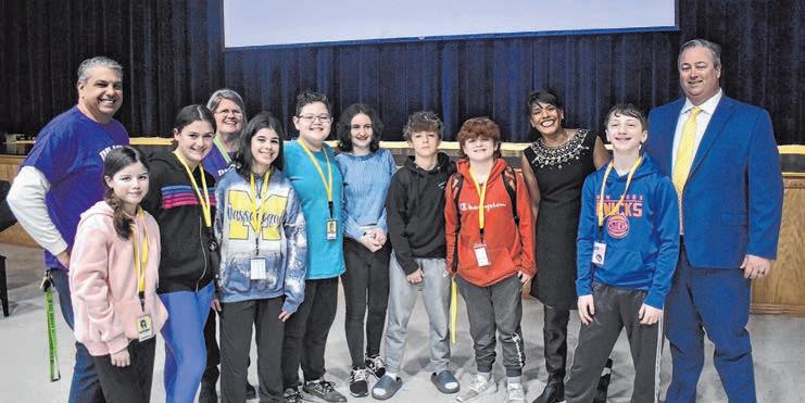 The SPEC Club, along with Superintendent of Schools Dave Schneider, Bethpage High School Principal Nicholas Jantz and Charles Campagne Elementary School Principal Erin Lindsay-DiFiglia, met with Lia and her family on Feb. 15 in the Bethpage High School auditorium to present a $1,000 check to Lia in her name.