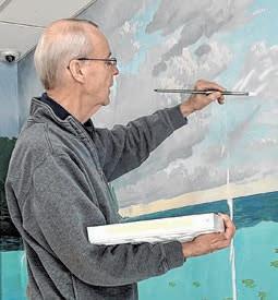 Former Manhasset art teacher Mark Fay improved the ocean mural on the downstairs floor of the school.