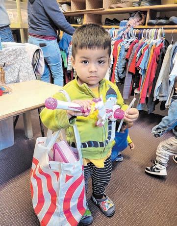 Jordan Alvarado, age 2, from Hempstead, selects a new toy.