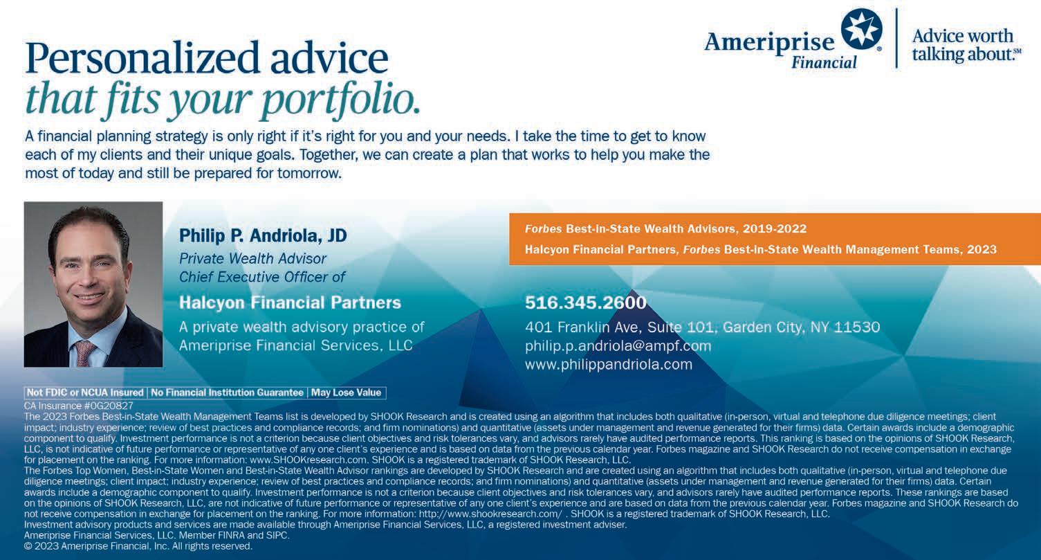 OCTOBER 4 -10, 2023 • ANTON MEDIA GROUP 239322 M Awarded 2023 RealTrends + Tom Ferry America’s Best Real Estate Professionals Top 1.5% of 1.6 million Real Estate Professional in America Luxury Homes Specialist, Agent of the Year, Long Island Business News Licensed Real Estate Salesperson O 516.627.9260 | M 516.641.2532 helene.vlachos@elliman.com helenevlachos.elliman.com elliman.com 110 WALT WHITMAN ROAD, HUNTINGTON STATION, NY, 11746. 631.549.7401. © 2023 DOUGLAS ELLIMAN REAL ESTATE. ALL MATERIAL PRESENTED HEREIN IS INTENDED FOR INFORMATION PURPOSES ONLY. WHILE, THIS INFORMATION IS BELIEVED TO BE CORRECT, IT IS REPRESENTED SUBJECT TO ERRORS, OMISSIONS, CHANGES OR WITHDRAWAL WITHOUT NOTICE. EQUAL HOUSING OPPORTUNITY. *SOURCE: MULTIPLE LISTING SERVICE OF LI. © 2023 JANUARY 1, 2023 TO SEPTEMBER 25, 2023.