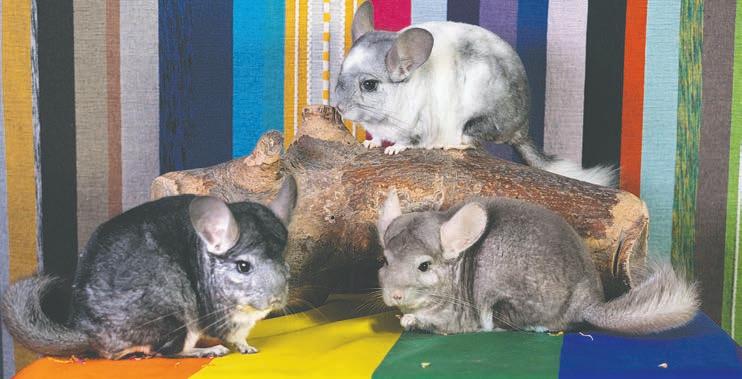 The chinchilla is smaller than a house cat, with large, dark eyes and velvety rounded ears and plush, grayish hair. According to the San Diego Zoo Wildlife Alliance, chinchillas are wildly social, living in family groups which can form vast colonies called herds of over 100 chinchillas.