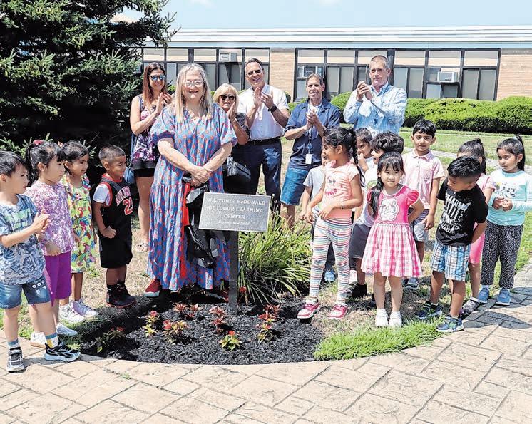 The Levittown Memorial Education Center is now home to the Dr. Tonie McDonald Outdoor Learning Center, an educational space in the building’s courtyard that was recently named in honor of the former superintendent.