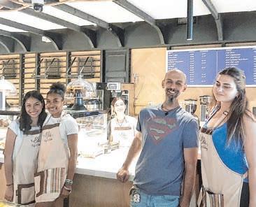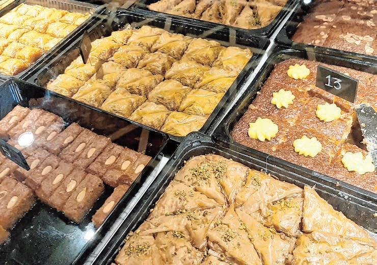 of sparkling Greek confections such as baklava, kataifi, walnut cake and loukoumades, along with Italian S cookies, American chocolate chip cookies and sandwiches. There is a full menu of pulled, dripped and shaken coffee drinks. They also have a full coffee/expresso bar with a variety of coffee drinks, teas, and smoothies.