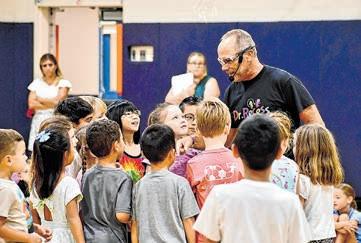 Students at Shelter Rock Elementary School learned how to play “Keep Away” during their assembly with Dr. Recess (right) on Sept. 12.