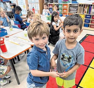 Munsey Park kindergartners in Mrs. Krugman’s class had a fun first week of school. They concluded the week by reading the book Our Class is a Family, by Shannon Olson. The class talked about how their classroom is a place where it’s safe to be themselves, that it’s okay to make mistakes and that it’s important to be a friend to others. They then made friendship bracelets with beads and exchanged them with a new friend.