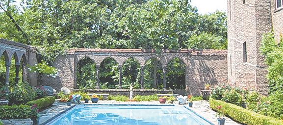 A beautiful swimming pool is located behind the house. Originally a rose garden, Guggenheim converted it after he became ill, and doctors told him he needed exercise.
