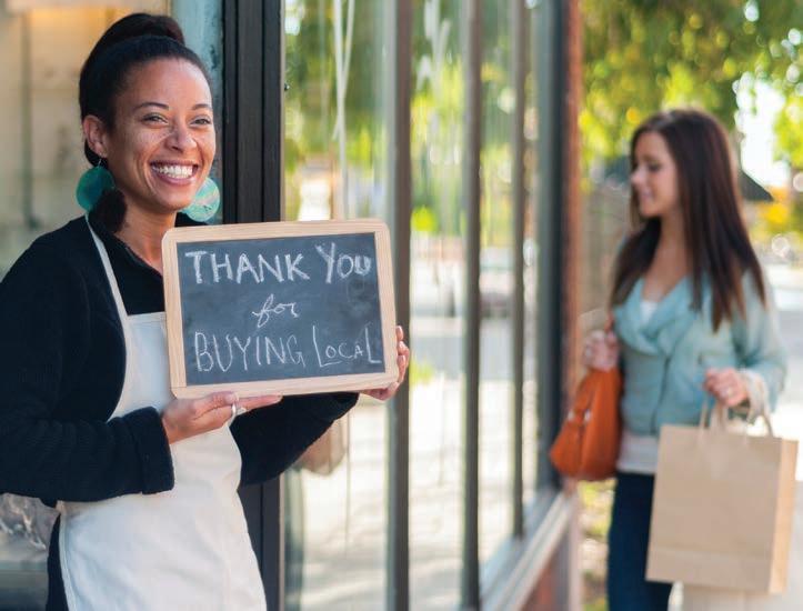 and big box stores don’t, offer and they support requests for donations for our community organizations like schools, scouts, religious and civic institutions, and others. Importantly, online shoppers may not realize that for every $100 you spend in your local small businesses, $68 stays in our community through jobs, taxes, contributions to non-profits and more. For every $100 you spend online, $0 stays in our community.