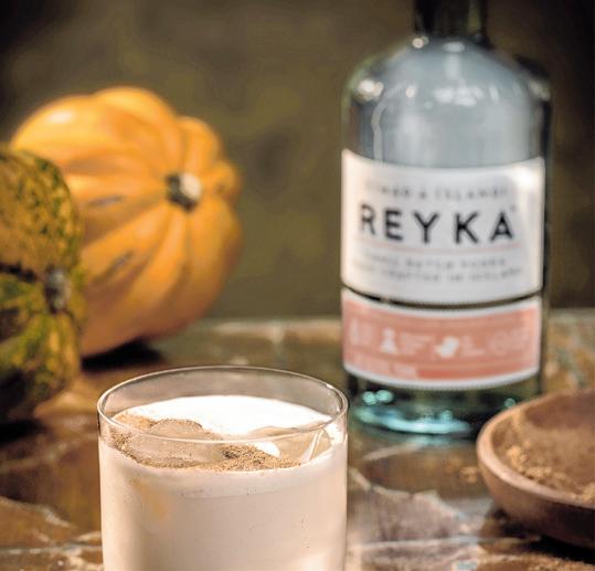 Combine heavy cream and pumpkin pie spice into a cocktail shaker and shake. Add Reyka Vodka and Coffee Liqueur and shake with ice. Serve on the rocks and garnish with cocoa puffs.