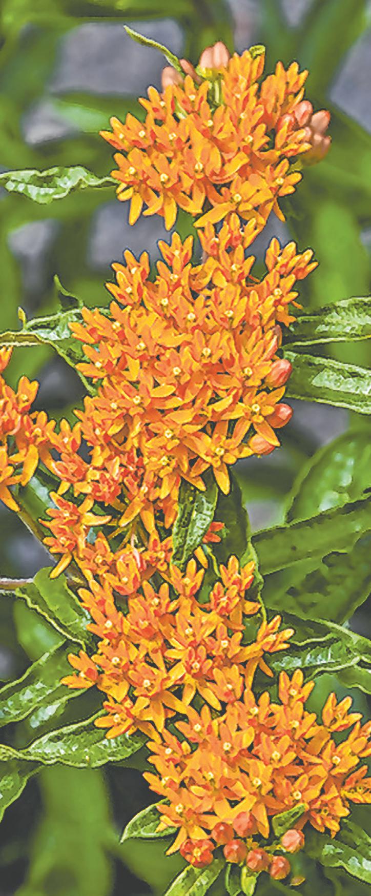 As the name suggests, this plant is a favorite of butterflies. It is deer resistant and prefers dry soil. July through August the plant produces brilliant orange flowers on stems up to 24 inches tall.