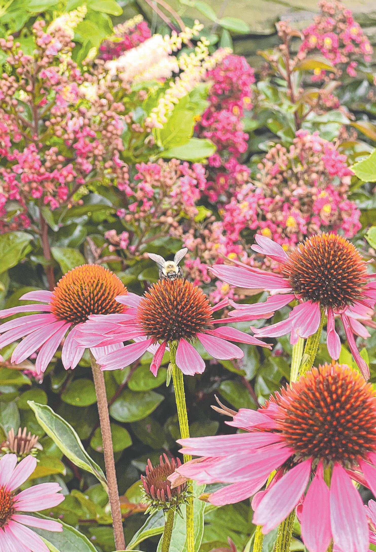 Purple coneflower is a gorgeous summer flowering plant. With bright blooms from June through August, it is an eye-catching option for border gardens and near patios and pools. The nectar is a favorite of bees and birds.