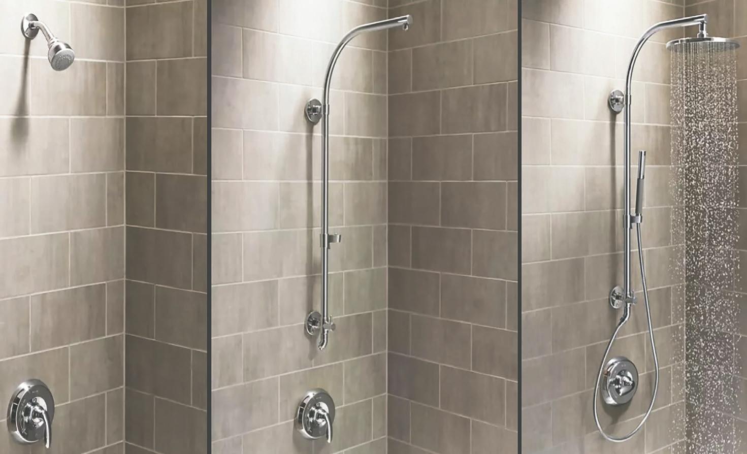 For those who want an update without opening walls, there is the HydroRail. HydroRail shower columns transform the shower without having to reroute plumbing or change out the valve because the column mounts to existing plumbing. Instead, simply remove the old showerarm and replace it with the HydroRail shower column.