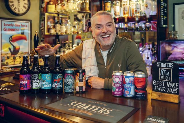 He’s smiling not only because he’s just won a year’s supply of beer from the discounter, but also because he’s stood pictured –not in a pub – but in what used to be part of his garage.