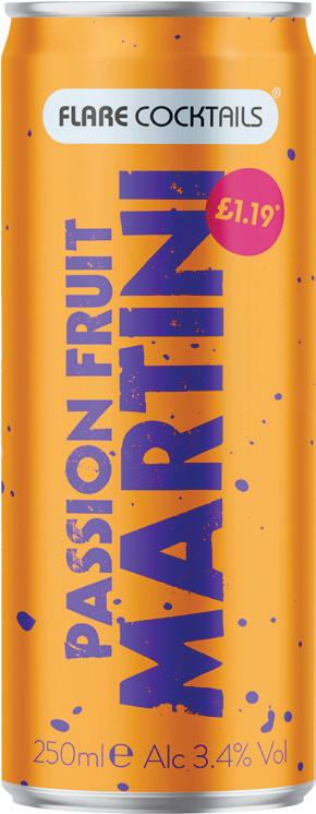 Nevertheless, there is still plenty of demand for traditional cocktail avours within alcoholic RTDs. “While innovation continues to drive excitement in the [alcoholic] RTD category, the demand for timeless classics remains incredibly strong,” says Emily Seddon, Brand Manager for Flare. “At Flare, we’re meeting this head-on with a standout range of tried-and-true favourites, including our best-seller, the Passion Fruit Martini, and the always-popular Mojito, both of which form part of the ‘Core Four’.