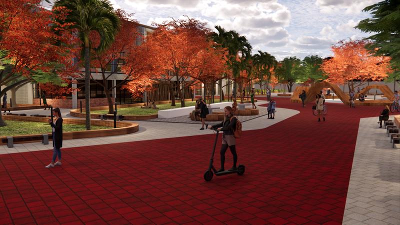 Se plantea específicamente una alameda con conexión al equipamiento cultural con la intención de brindar soluciones respecto a la conexión entre el medio construido y los elementos naturales