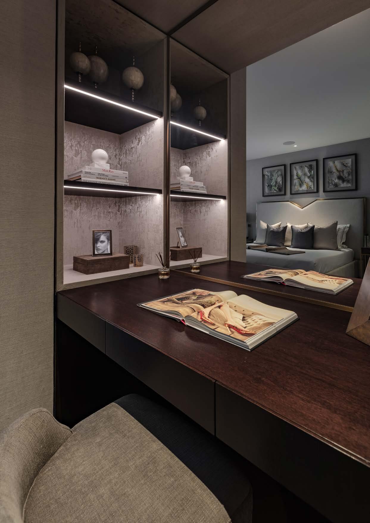 All carpentry and joinery works have been designed, manufactured and installed in the apartments by Ant Yapi UK Ltd, as well as bespoke built-in furniture. Book match marble slabs have been installed on the floors, walls, worktops across the project.