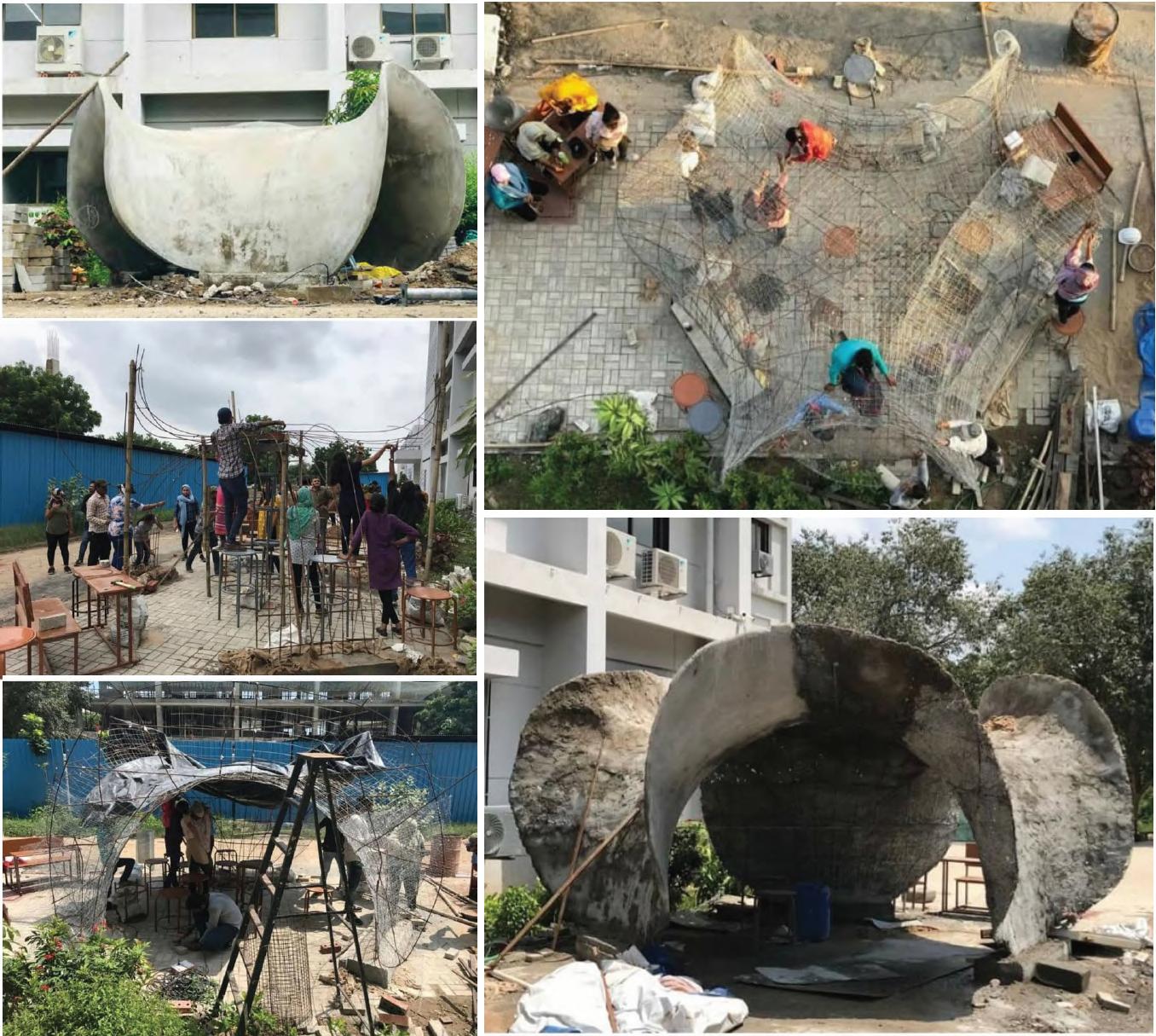 A critical part of the construction was designing the formwork to mold the parabolic shape. We opted for a reusable, lightweight formwork that could support the weight of the wet mortar.