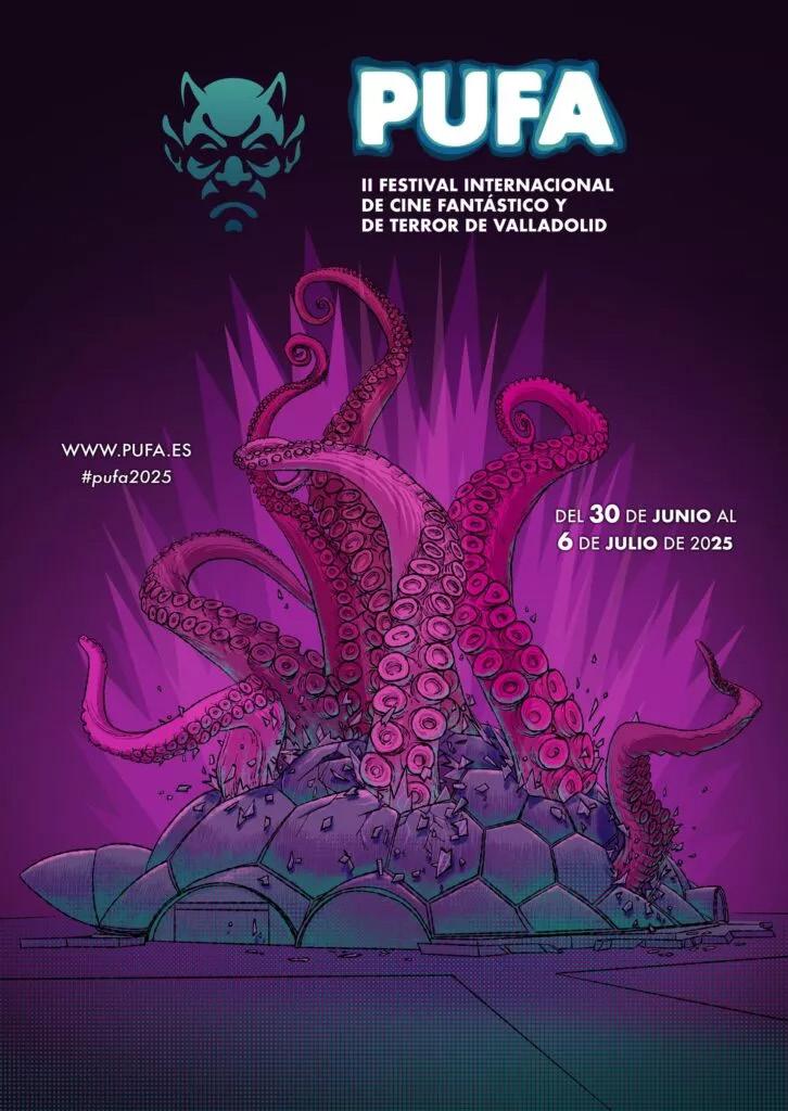 La segunda edición de PUFA, que amplía en un día sus fechas y tendrá lugar del 30 de junio al 6 de julio de 2025, se ha inspirado además en el universo Lovecraft para el diseño del cartel de este año. Obra del ilustrador Miguel Martín Herrero, la imagen oficial muestra una impactante imagen de los tentáculos de Cthulhu emergiendo desde la emblemática Cúpula del Milenio de Valladolid.