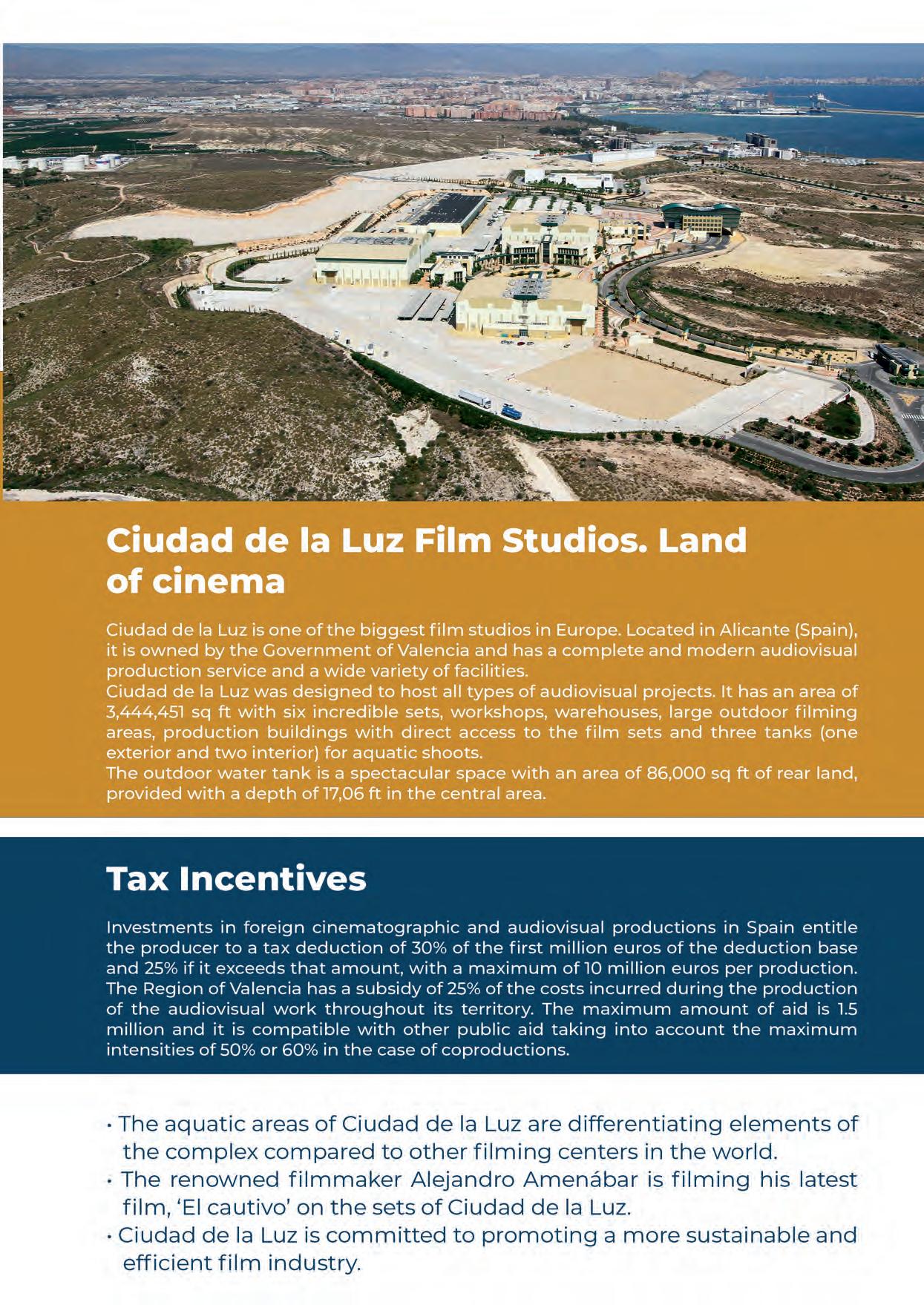 Other content that you can enjoy in this edition is a piece about the solutions that are being provided for Green Shooting, articles about AFCI Week and several location awards or an overview of new facilities for film and TV production that are being built in Spain. In short, a varied content menu to get the big picture.