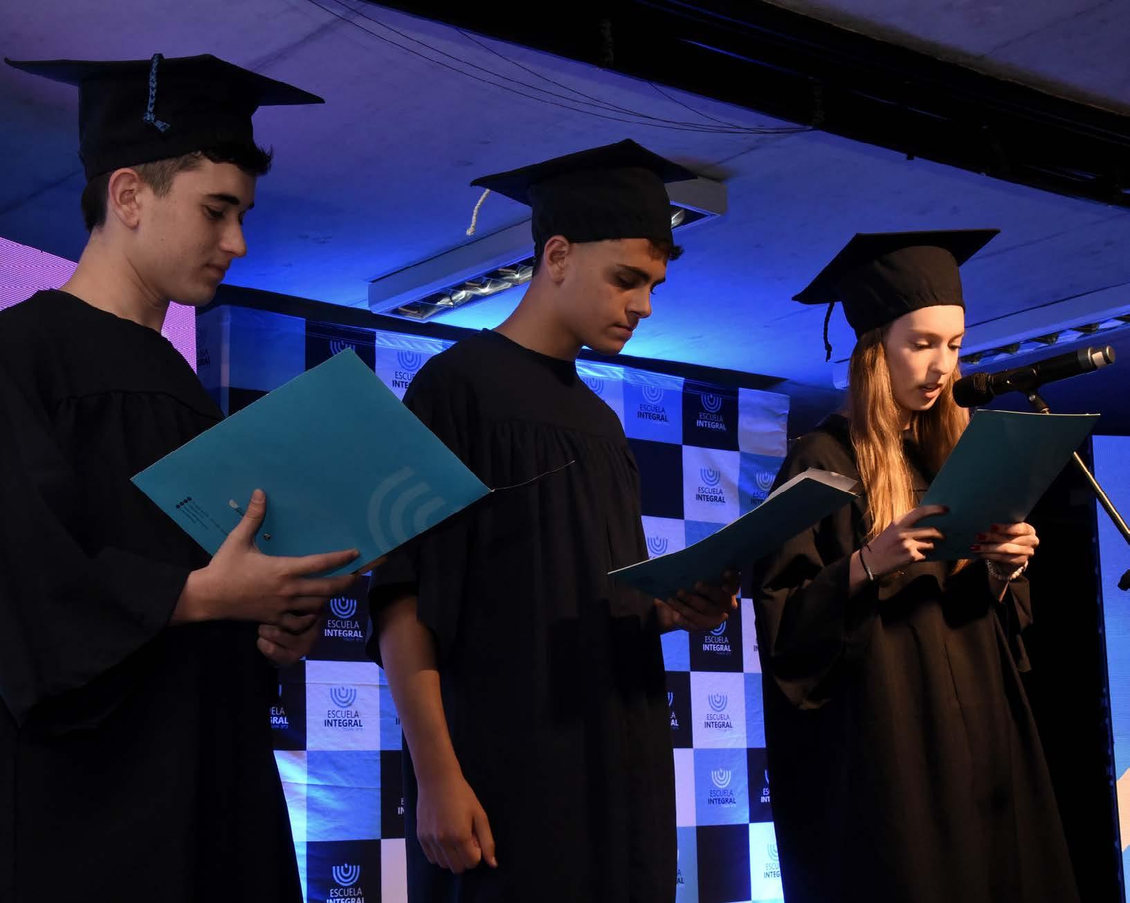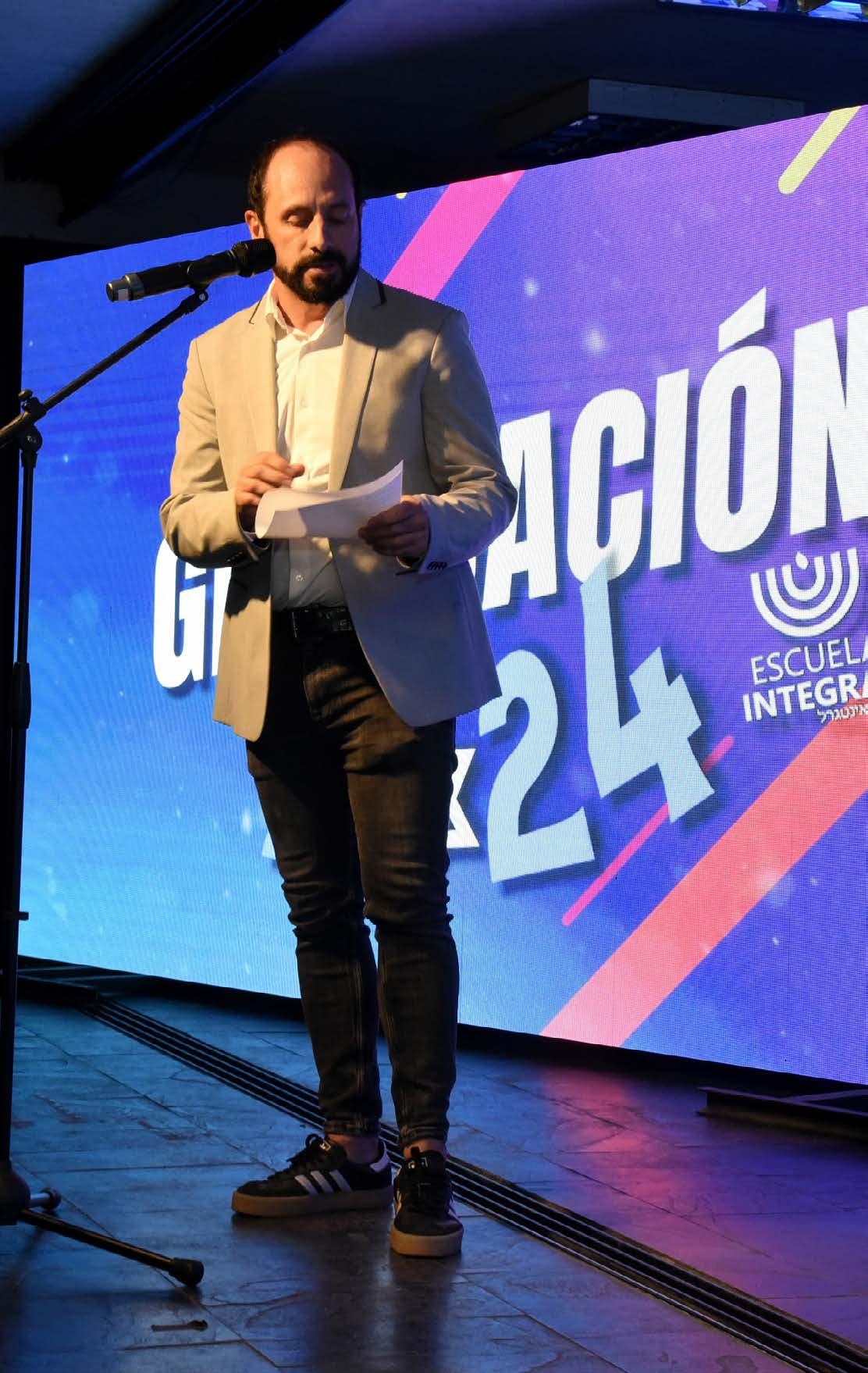 Hoy, además de felicitarlos a Uds. y a vuestros padres por haber apostado por nuestra Escuela, les extendemos la mano y les decimos: Brujim Abaim alumnis… Queremos que formen parte activa, que se involucren en los eventos, que compitan en nuestros deportes y que el sentir y latir de nuestra Escuela esté en cada emprendimiento que hagan y comiencen.