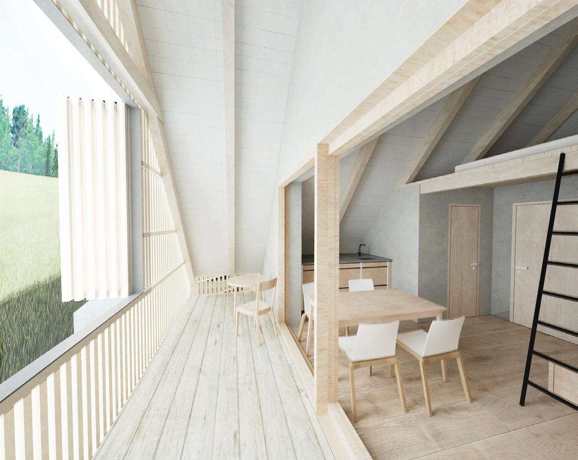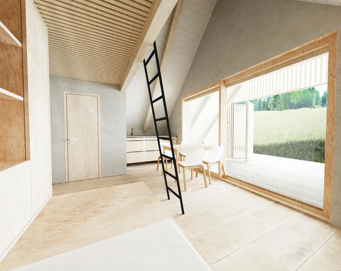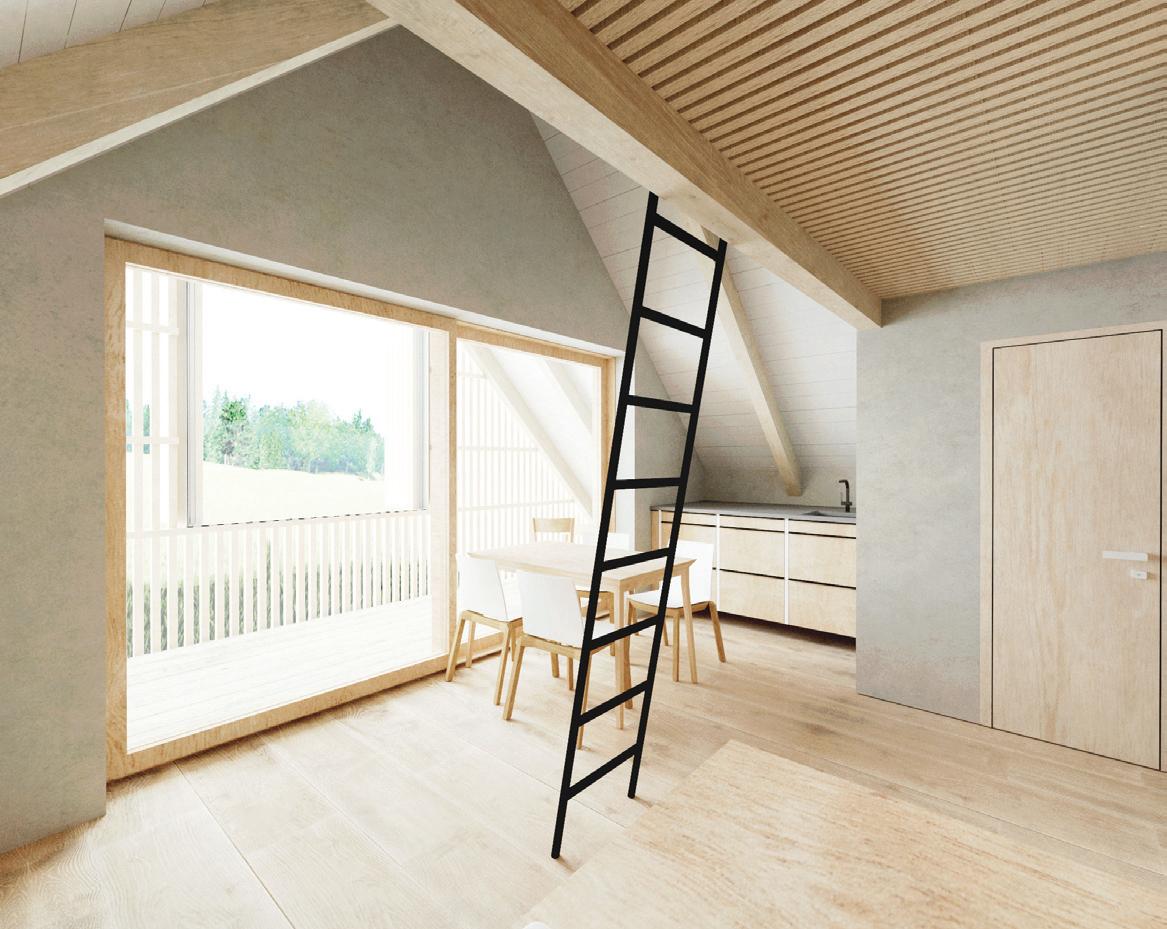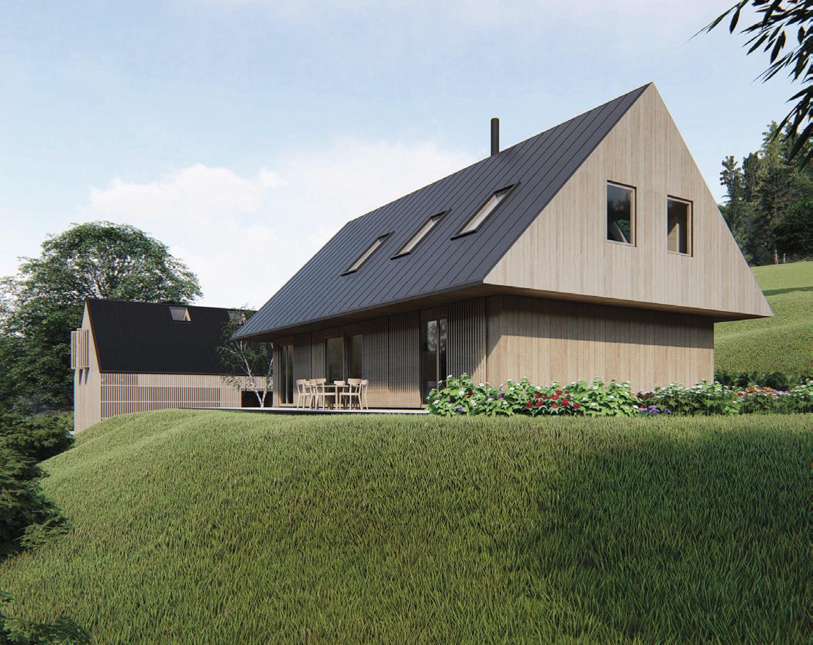 Leitmotivem obou staveb je velký otvor napříč, aby domy byly branami, kterými (se) krásná krajina dál prochází.