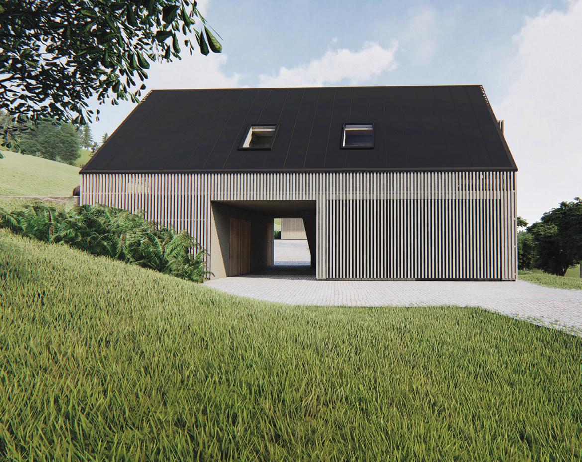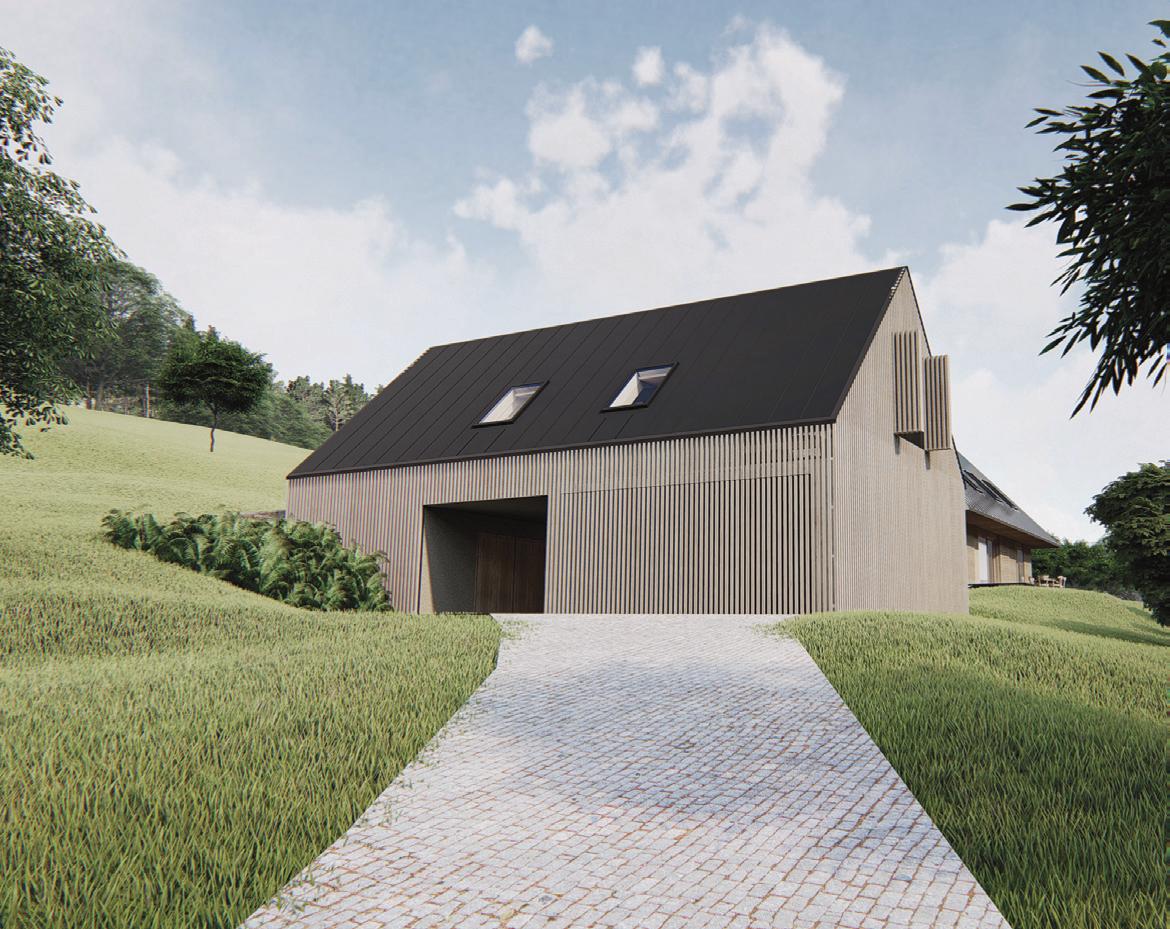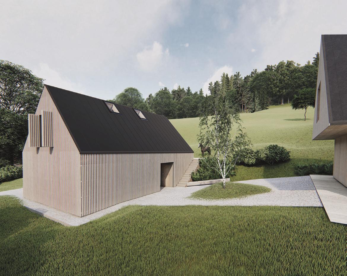 Na louce pod Janovickou strání, kde se pasou koně, v rytmu života na cestě do Adršpachu (dům - stodola – dům – stodola) přidáváme dům a stodolu.