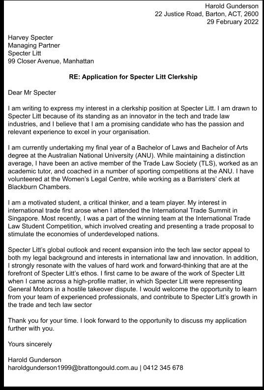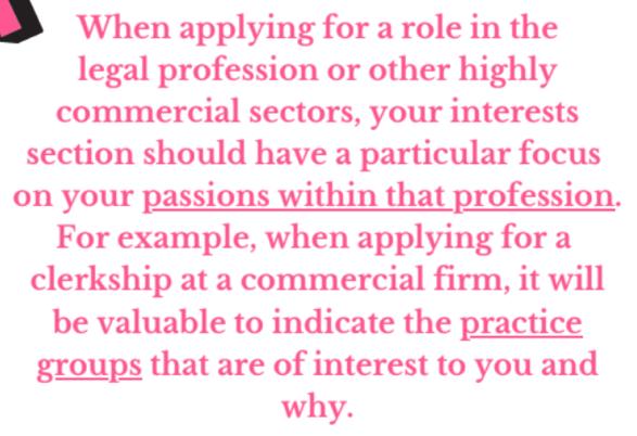 Applicants may struggle to articulate precisely why they have chosen to pursue a clerkship, why they want to be a part of the firm or organisation, and why they feel that their skills and passions are well suited to that firm or organisation.