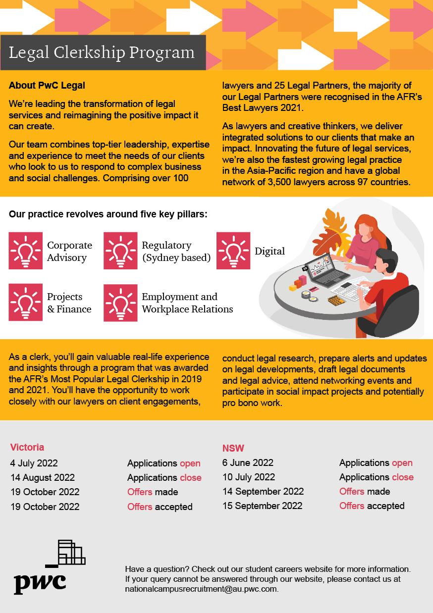 We wish to thank all who have made the production and publication of the 2022 Australian National University Law Students’ Society Clerkship Guide possible.
