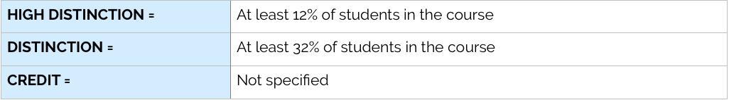 The interim policy has removed the restrictions on the maximum number HD, D and CR grades that are awarded in a semester where students in a cohort have met the marking criteria for each grade band. This means that you won’t be scaled down a grade band even if you have met the criteria for that band. You can find the marking criteria for each grade band in the CMS for any course.