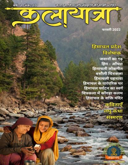 वर्ष : 2, अंक : 5 7 डाॅ तरूणा माथुर, मुख्य संपाददका, कलायारिा पवरिका फकसी ्ी ्दारतीय कदा एक सपनदा जरूर होतदा है फक वे जीवन म एक बदार कशमीर घम कर आए और अपने जीवन के सबसे सख् और स्र सपने को सदाकदार कर सके। वह ्ी कयों नदा हो, बरसों ्दारतीय फिलमी ्तनयदा ने ्दारतीयों के सदामने कशमीर को पयदार करने वदालों की सवगगीक ्तनयदा के रूप म सम्ादकीय ह्खदायदा और जब तक जमम कशमीर पर आतंक की कदाली छदायदा नहीं पड़ी ्ी तब तक हर ्दारतीय के रोमदांस को कशमीर की वदाह्यों कदा सदा् लमलदा। हर ्दारतीय के धदालममाक उदगगदारों को मदा वैष््ो और ्ोले बदाबदा कदा आशीवदामा् ्ी लमलदा। अनरदागयम “कलदायदात्रदा” इस बदार धरती के सवगमा के ही ्शमान करदाने पहि गई है ,जहदा पलवदामदा के सेब के बदाग पहलगदांव की खबसरत घदाहटयदा सोनमगमा की बिमा से जमी झीलें, हरे-्रे खशगवदार पहदाड़ स्र स्र िलों से ्री लहर्दार वदाह्यदा गलमगमा, सोनमगमा, मतलब धरती कदा सवगमा मदा वैष््ो ्ेवी कदा आंगन जमम के कटरदा की पयौरदाख्क धरोहर और ्दारत के सवदामाचधक उचि लशखर पर ववरदालसत लद्दाख की अववसमर्ीय यदात्रदा सबकदा मन आहलदाह्त है। बिपन म जजन दृशयों की मनोरमतदा को ्ेखकर उन फिलमी गदानों और लोकेशन को ववसमत सदा अन्व कर हर फकसी की िदाह एक बदार ्दारत के सबसे स्र पहदाड़ी वदाह्यों को ्ेखने की होती है आज कलदायदात्रदा के मदाधयम से हम आपकी उपजस्तत वहदा करदाने जदा रहे ह। लद्दाख जहदा से गलेलशयर प्रदारं ् हआ और ्दारत ्ी। एक कहदानी वहदा प्रिललत है कहते ह फक लद्दाख के गदाँव-गदाँव म हमदारे सैतनकों की उन ्गमाम बिदामानी इलदाके म एक म््गदार वयजकत है जो ह्खदाई नहीं ्ेते ह वहदा ियौजजयों की म्् करते ह और ियौजी उनह बदाबदा मदानते ह। कहते ह वे पहले से होने वदाली घटनदाओं को ियौजजयों को सब कछ बतदा ्ेते ह और ियौजी उनह समझ कर ही अपनी र्नीतत बनदाते ह। वहदा पर एक िंबकीय