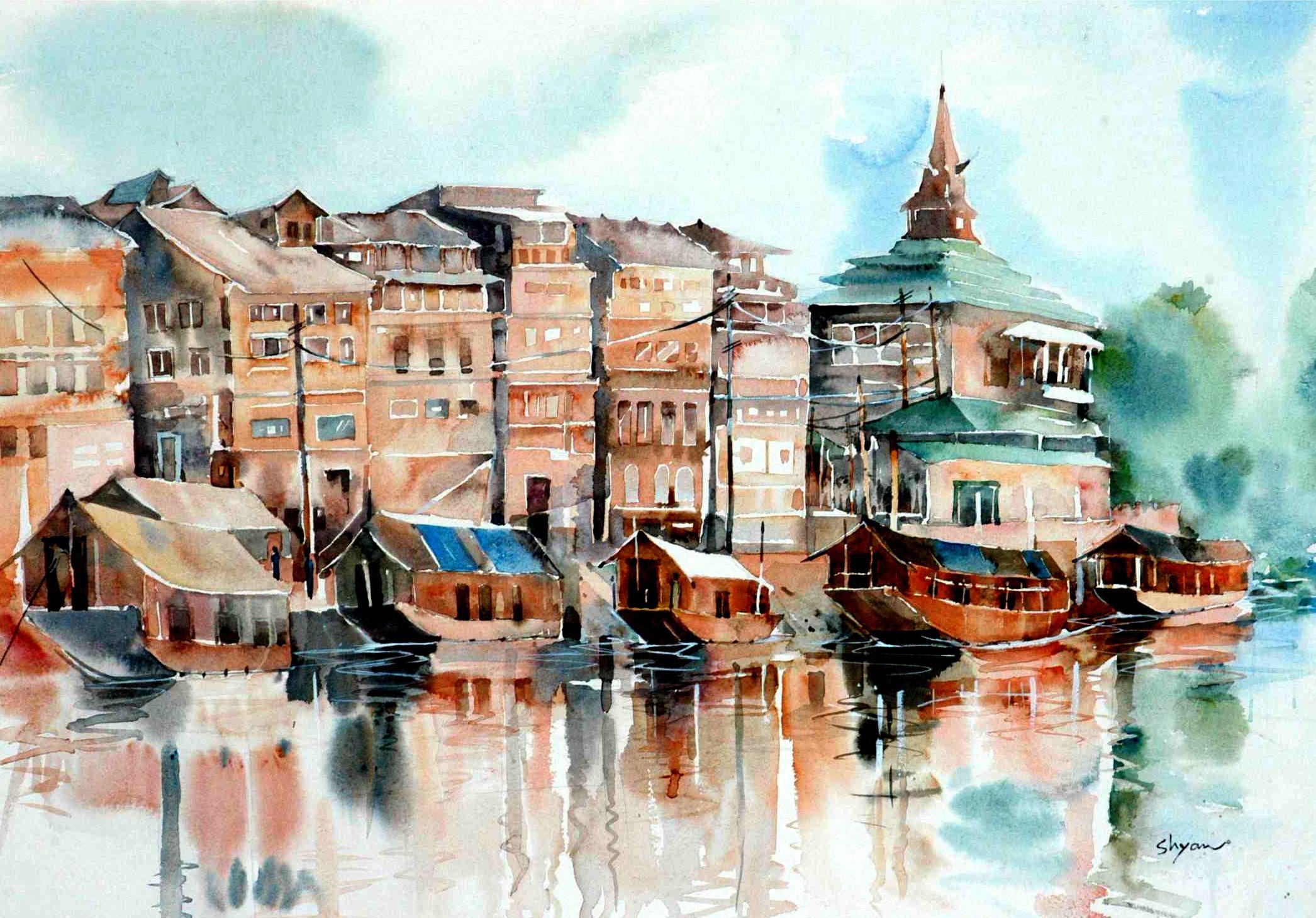 जमम , कशमीर और लद्दाख की चित्रकदारी वर्ष : 2, अंक : 5 18 पुिाना कश्ीि || वाटि किि || 24X34 इंच ऑगदेवनक मॉवनिंग के लिए तैयाि कश्ीि || वाटि किि || 24X26 इंच