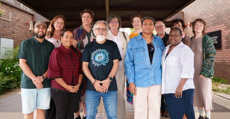 Associate Professor Nicholas Bainton and ANU Vice-President (First Nations) Professor Peter Yu, with researchers from the Centre for Indigenous Policy Research, the Centre for the Public Awareness of Science, the School of Philosophy and the First Nations Portfolio. In partnership with the Ngarluma Yindjibarndi Foundation Limited of the Pilbara region in Western Australia, a Traditional Owner organisation, the project aims to build Indigenous research capabilities and codevelop a long-term international research agenda that supports the rights, resilience and sovereignty of Indigenous communities in the context of resource extraction.