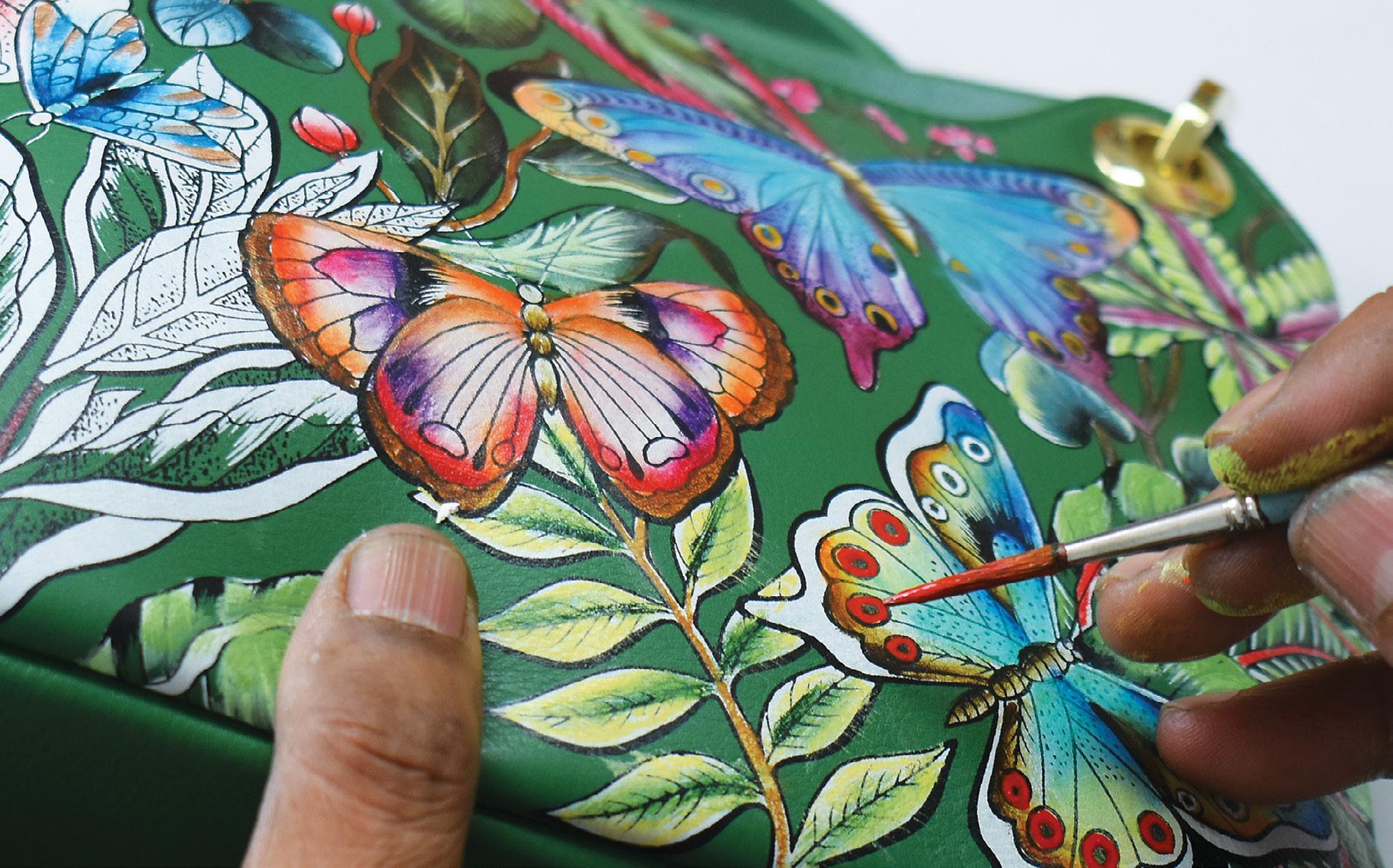 Anuschka hires economically challenged young adults, armed with a basic sense of art and eagerness to learn the trade. They are taught the intricacies of painting on leather in the family’s workshop. Over the years, these skills empower them while preserving the rich heritage of art on leather.
