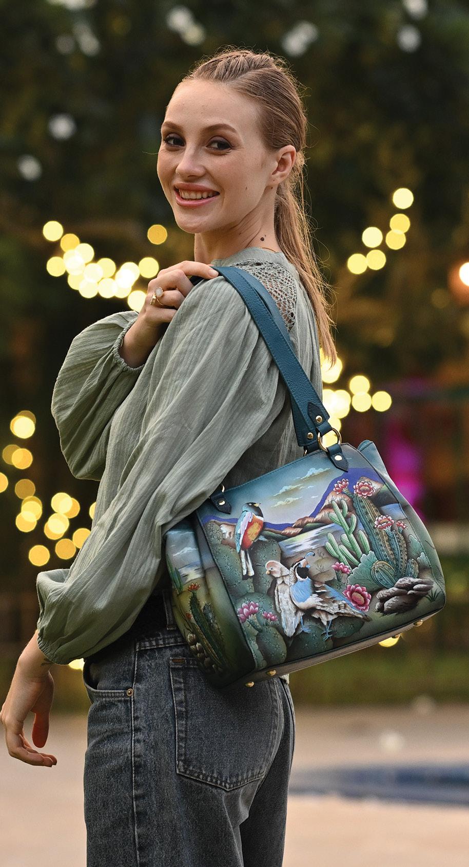 This year, we’re thrilled to unveil the Anna by Anuschka Heritage Collection, where traditional leatherwork meets artful expression. From map prints to embossed basket weave textures, each piece in this collection celebrates our artisans’ deep-rooted skill and dedication. Alongside this, our Wanderlust Collection expands with Plush Quilted and Luxe Fabric bags—lightweight, water-resistant, and 100% vegan, they reflect our promise to bring beauty and meaning with every creation.