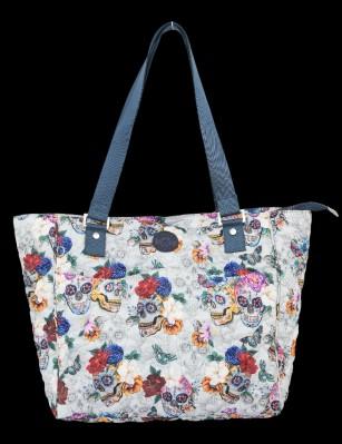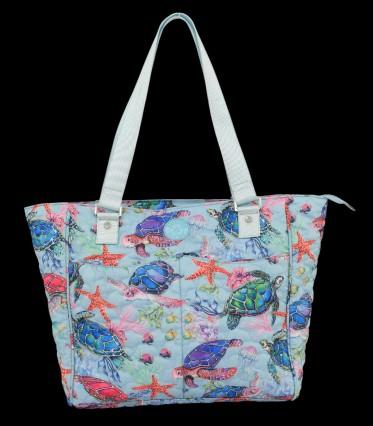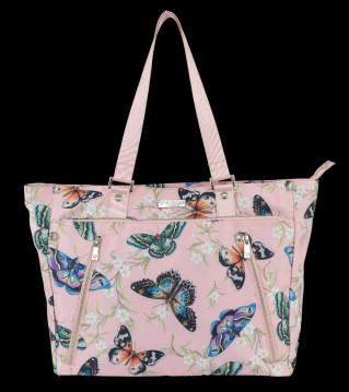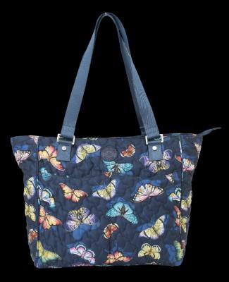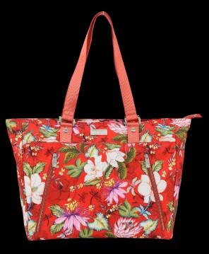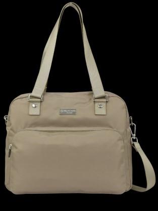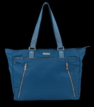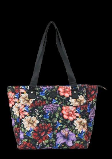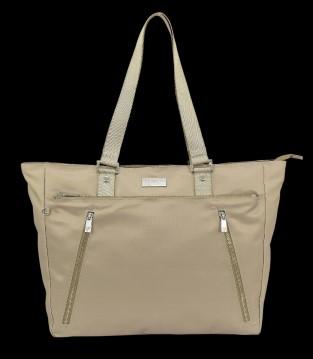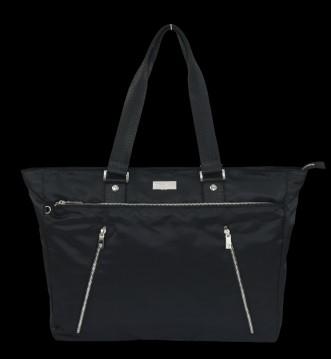 Top zip entry to the main compartment. Inside one zip pocket, one open wall pocket and two multipurpose pockets. Outside front has two slip pockets and rear double zip pockets. Double shoulder handle with 10.5" drop.(18" x 12" x 4") TOTE BAG